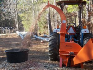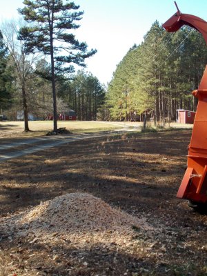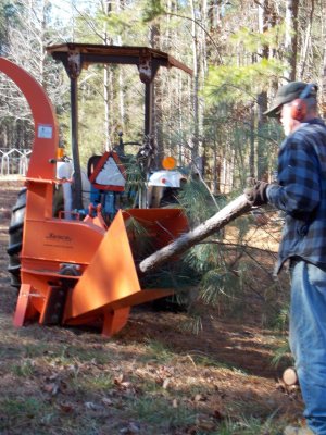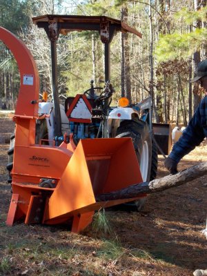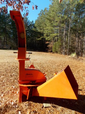 Chipper weighs 800 lbs and will chip logs upto 6" in diameter.